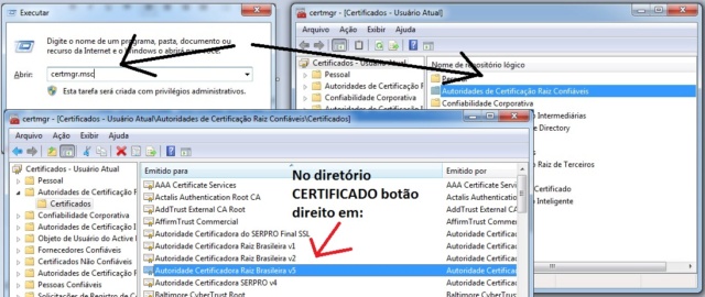 1º Pressione Windows + R e digite “certmgr.msc” sem as aspas e clique em OK