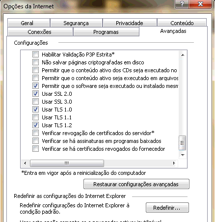 5º Verifique também as opções de internet do IE como na imagem e salve: